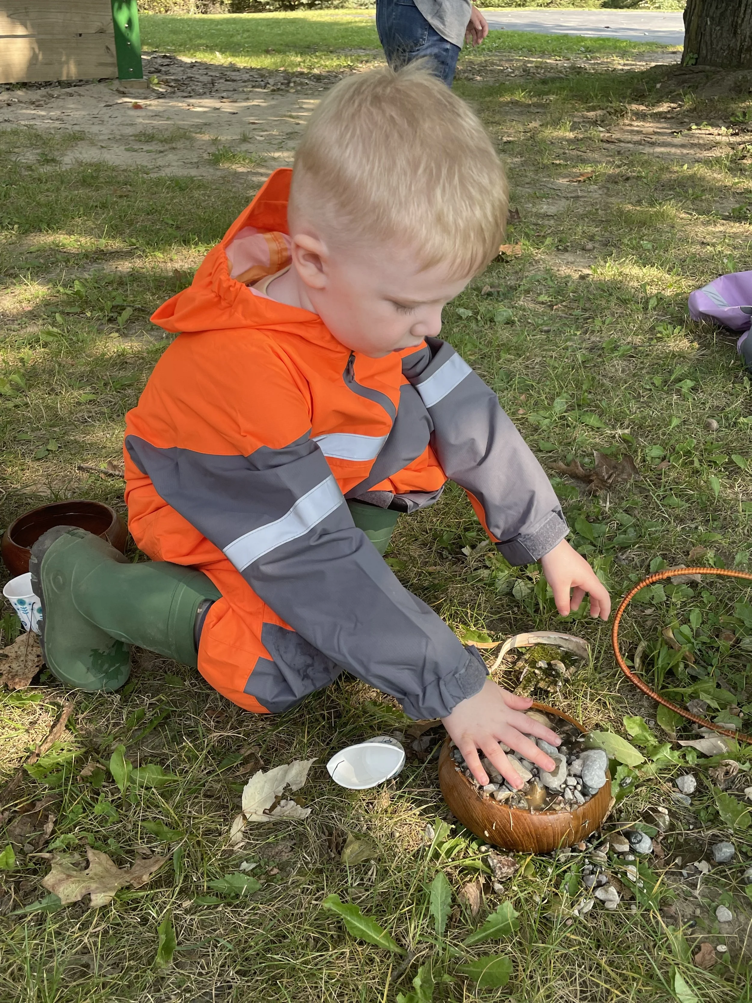 A Pinewood Trails Early Learner making nature soup.